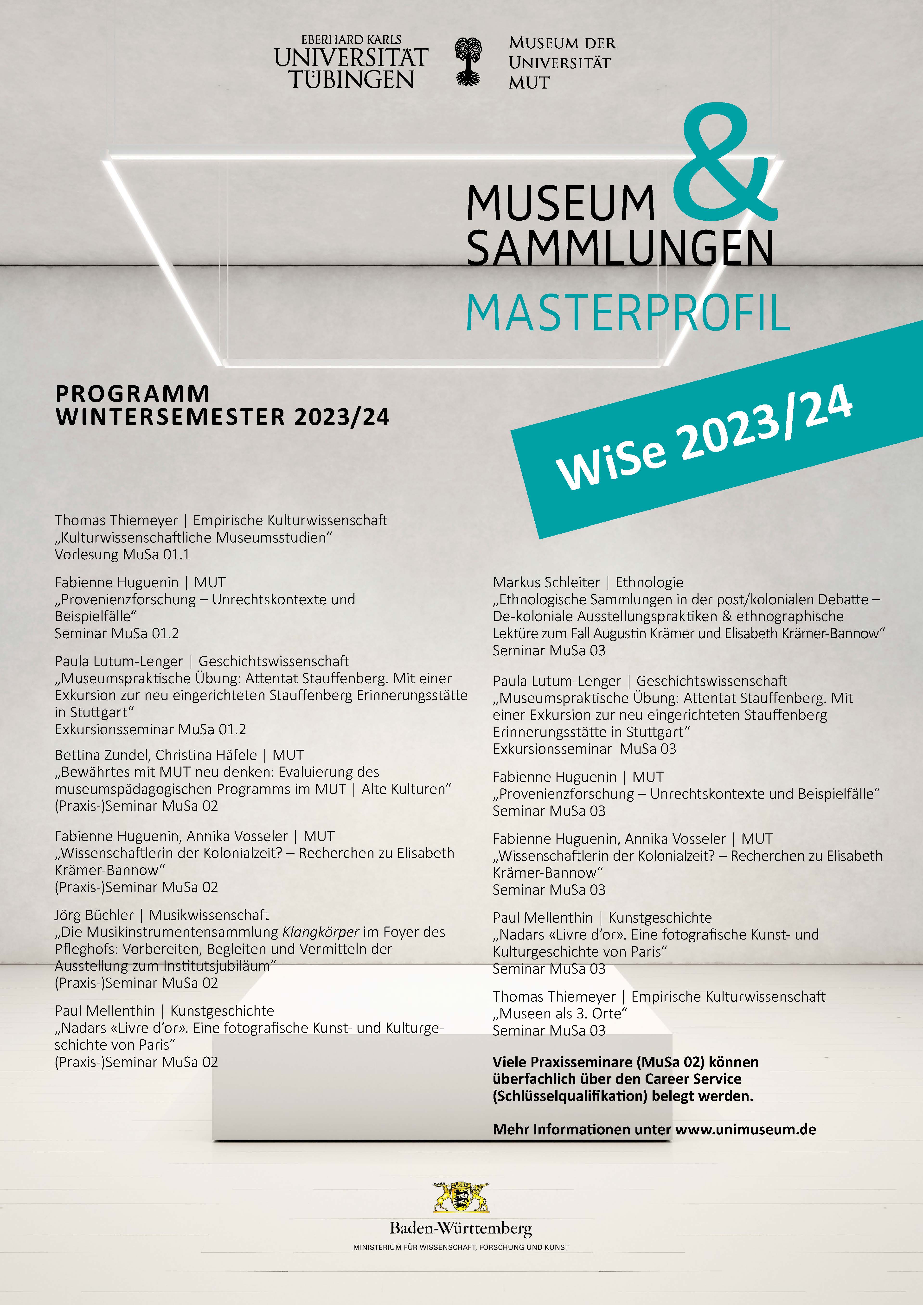 Lehrprogramm zum Masterprofil „Museum & Sammlungen“ am MUT im Wintersemester 2023/2024