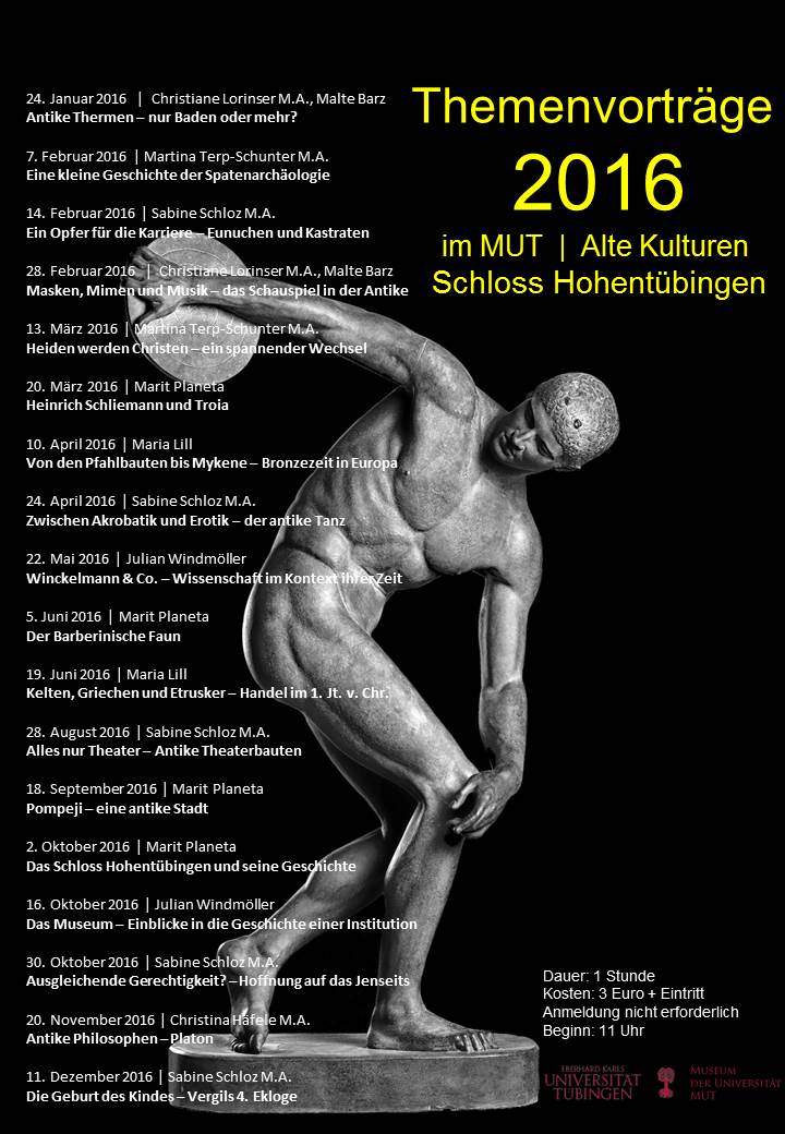 MUT | Alte Kulturen, auch junge Fachwissenschaftler und Studierende für Sondervorträge im Museum Alte Kulturen auf Schloss Hohentübingen zu gewinnen.
